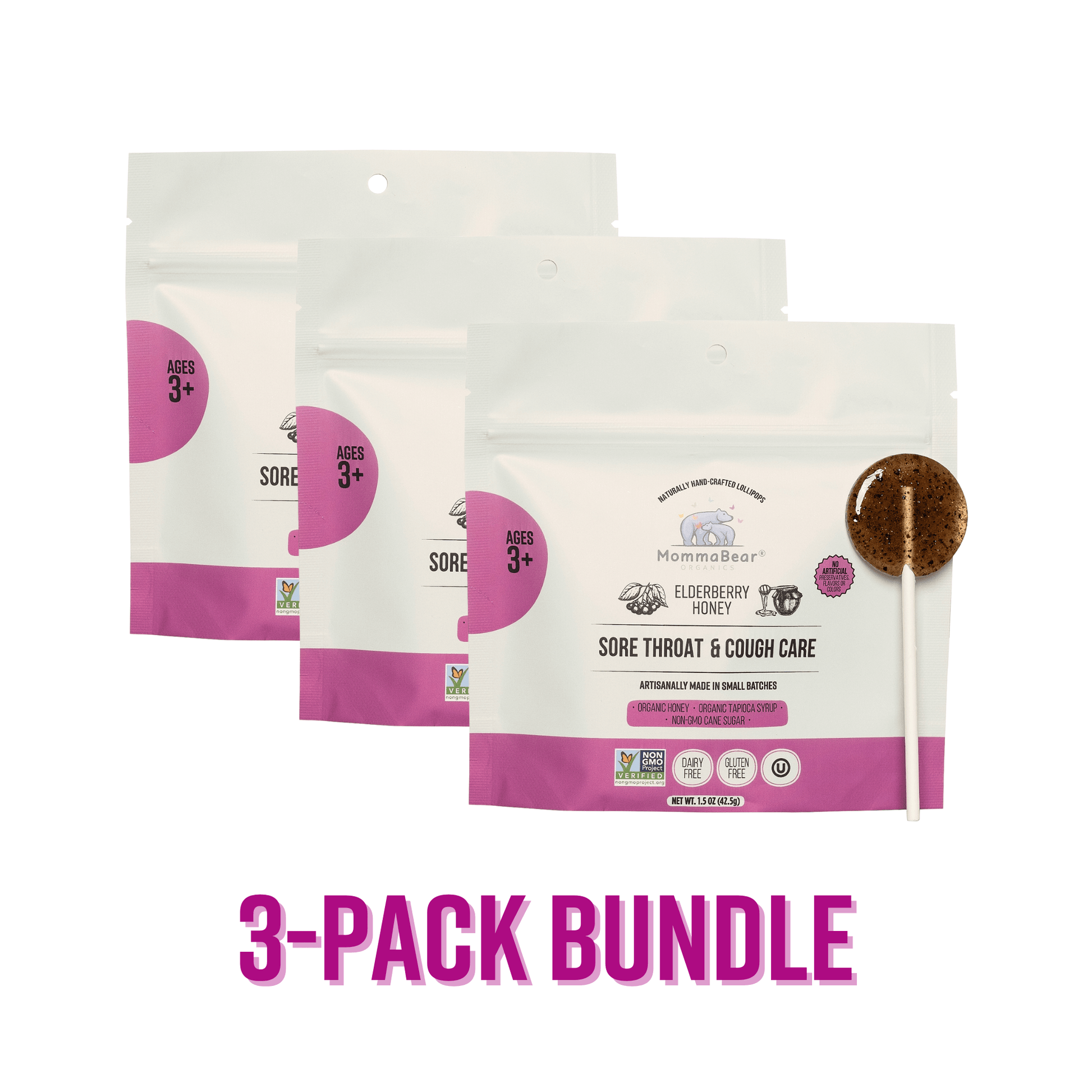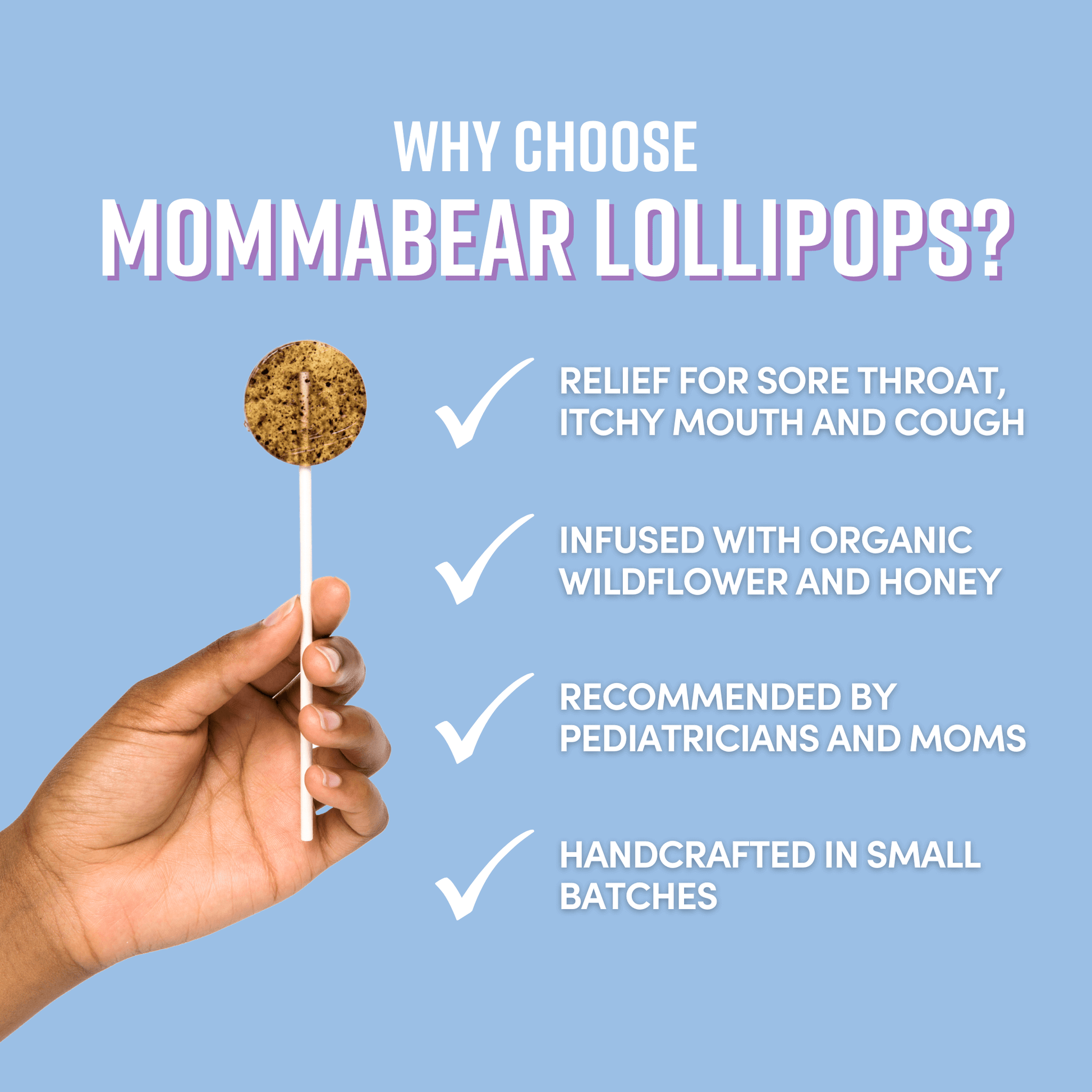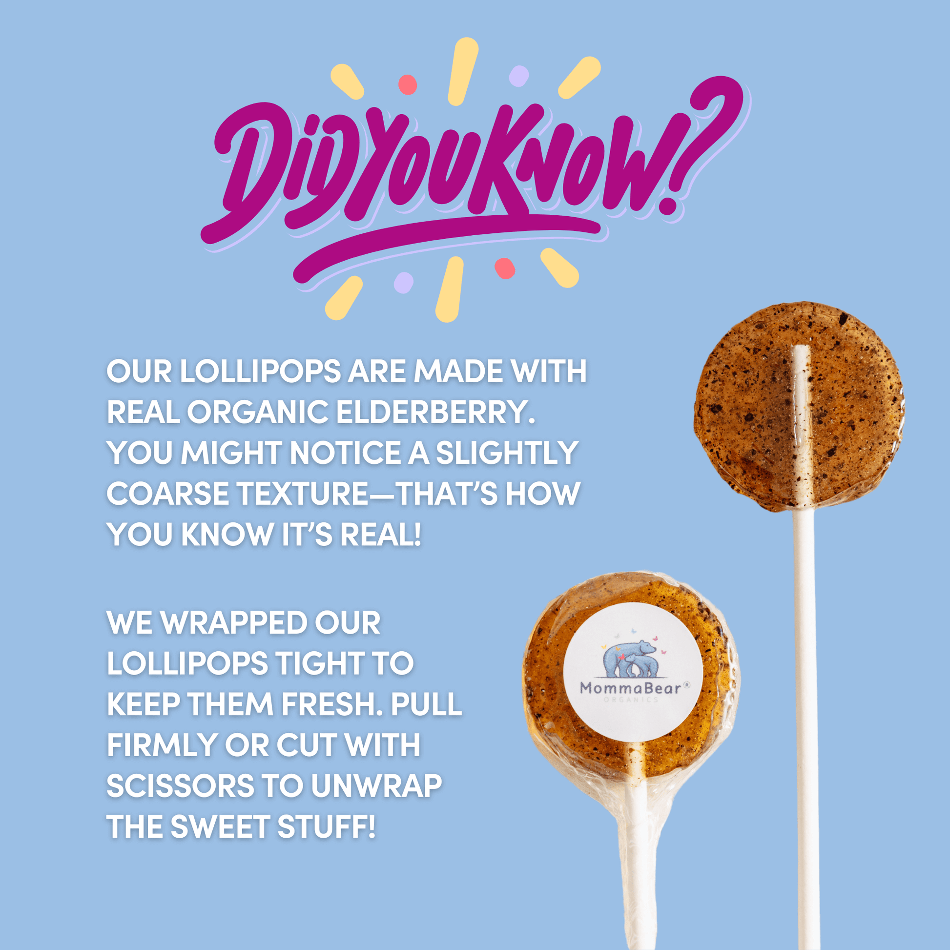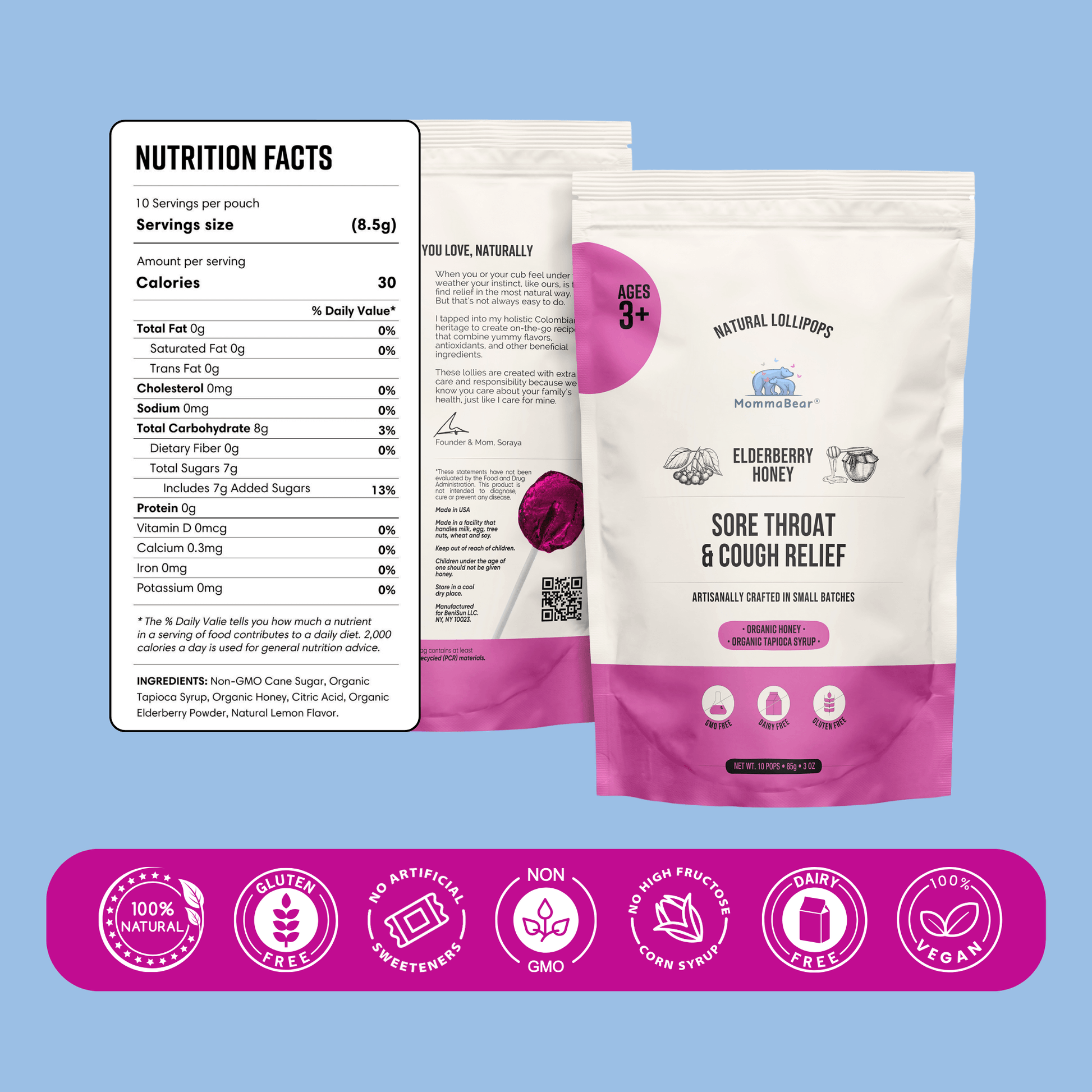 One of the primary advantages of choosing cough lollipops from MommaBear Organics is the use of natural ingredients. Our organic lollipops are crafted in small batches in the USA, and we take pride in using simple organic ingredients. Cough lollipops harness the power of elderberry, known for its immune-boosting properties. Elderberry has been used for centuries to support overall health, and when incorporated into our sore throat lollipops, it can help alleviate the symptoms of a sore throat or cough.